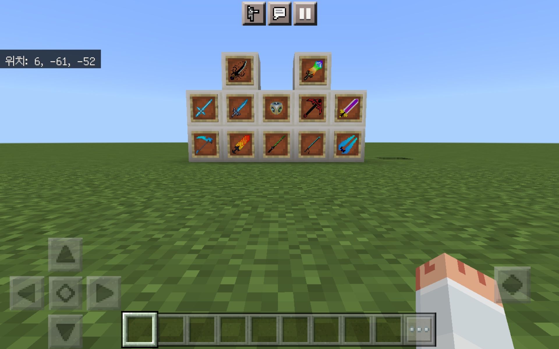 마크 월드에딧 베드락 버전입니다. 실험기능에서 베타 API 켜야합니다. 사용법(간략) 우선 명령어로 /tag @s add worldedit을 입력햐야 사용가능 ;kit : 나무도끼, 복붙 등등 도구 받기 ;set <블록명> : 나무도끼로 선택한지점 블록으로 채우기 ;walls <블록명> : 나무도끼로 선택한지점 테두리에 벽세우기(천장 안채워짐) ;cut : 나무도끼로 선택한지점 잘라내기 ;sphere <블록명> <반지름> : 구 생성. sphere앞에 h붙이면 속이 빈 구 생성 가능 ;cyl <블록명> <반지름> <높이> : 원기둥 생성. cyl앞에 h붙이면 속이 빈 원기둥 생성 가능 ;pyramid <블록명> <높이> : 피라미드 생성. pyramid앞에 h붙이면 속이 빈 피라미드 생성 가능 자세한건 https://mcpedl.com/worldedit-be-addon 에서 확인가능.