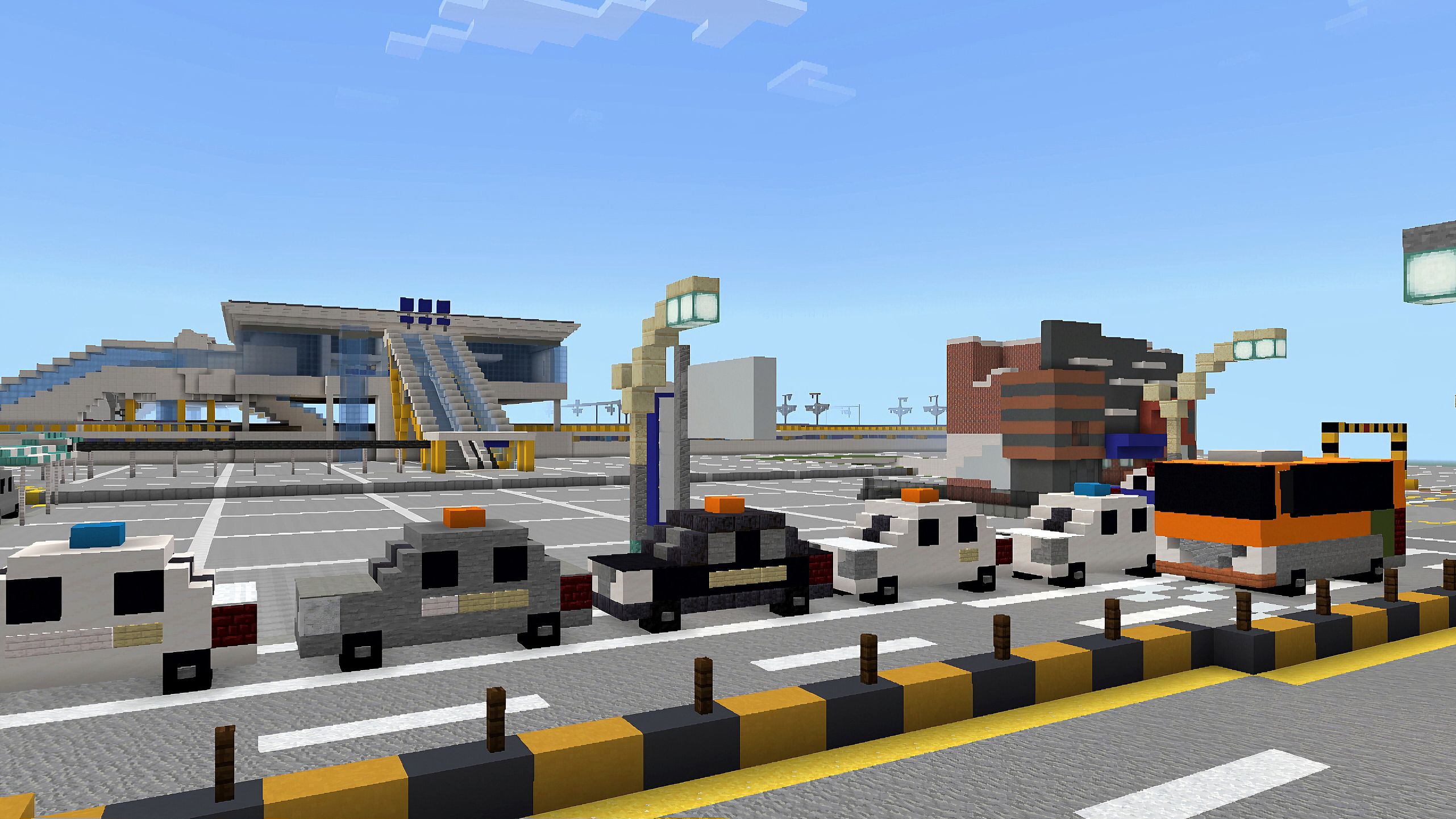 「3호선의 지축 드리프트를 고스란히 마인크래프트로 이식했다!」 아직까지 맵 구성은 별로 없지만, 느리지만 천천히 세세하게 추가할 예정입니다 남쪽 도로를 따라가다보면 2번째 사진에서 보이는 힐데스하임 건물이 있습니다 +롯데몰 외벽과 엘크루아파트가 추가되었습니다 다음 버전에서 더 좋은 맵으로 뵙겠습니다!